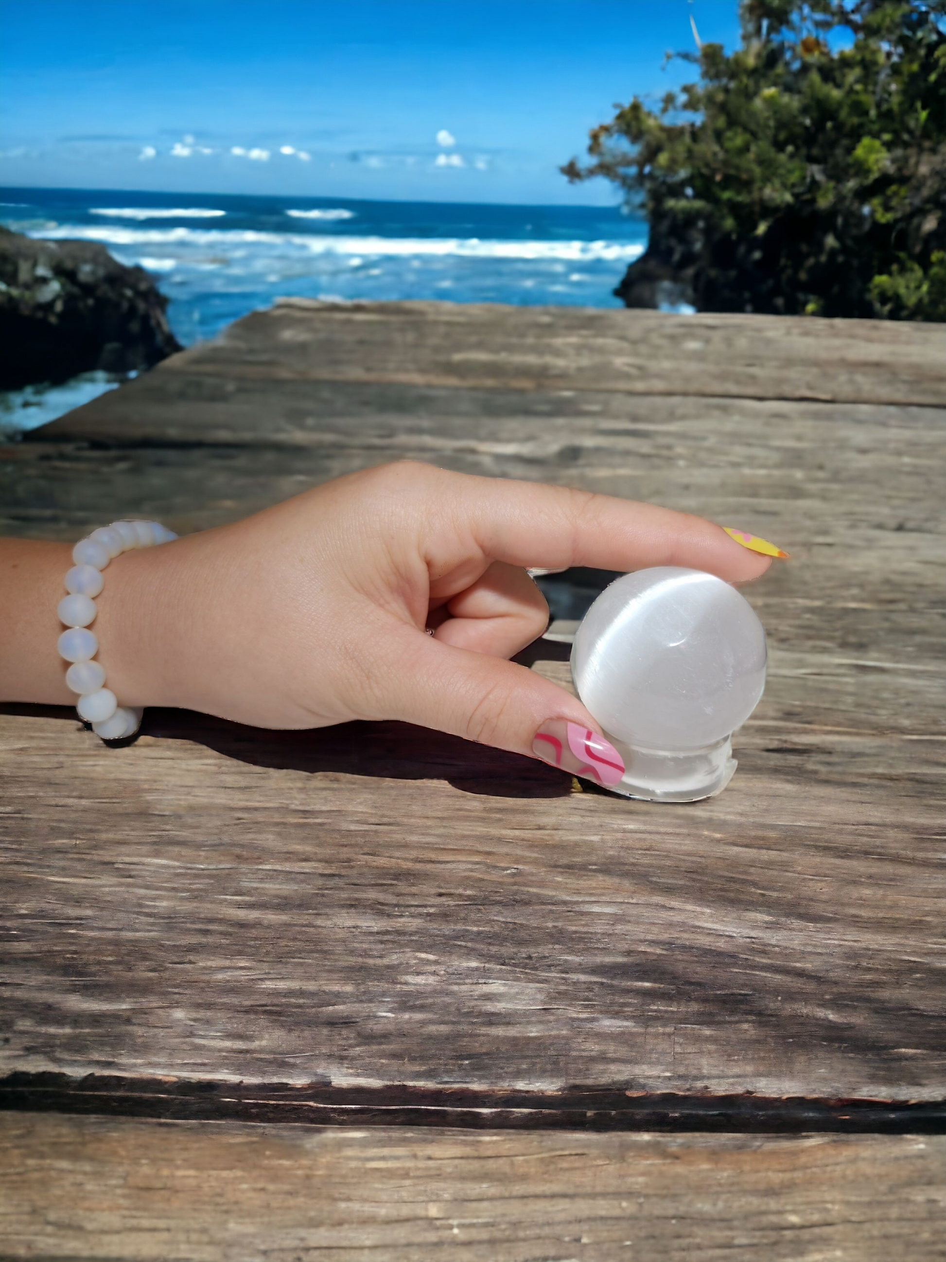 Selenite spheres are not just beautiful to look at; they carry a very high vibration that can assist in opening the Crown Chakra, promoting a deep sense of inner peace, clarity, and connection to the higher realms. Often associated with purity and truth, selenite is believed to bring light and healing to every space it inhabits, acting as a tool for enlightenment and spiritual guidance. It's said that these spheres can also enhance telepathic communication and bring about a greater understanding of our inner selves and the world around us. Selenite is truly a remarkable stone for those seeking spiritual growth and a connection to the divine feminine energy.